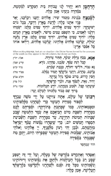 Amo del universo, Tú nos has ordenado por medio de Moshé, Tu servidor, contar Sefirat HaOmer, a fin de purificarnos de nuestra iniquidad e impureza. Tal como has escrito en tu Torá: “Contaréis para vosotros desde el día siguiente al día de descanso, desde el día en que traéis el Omer como ofrenda mecida; [la cuenta será] siete semanas completas. Hasta el día posterior a la séptima semana contaréis cincuenta días”, a fin de que las almas de Tu pueblo Israel sean purificadas de impureza. Por consiguiente, sea Tu voluntad, Adonai nuestro Di-s y Di-s de nuestros padres, que en mérito del Sefirat HaOmer que conté hoy Hod ShebeJesed, sea rectificado el daño que he causado en la sefira, y que yo sea purificado y santificado con la santidad suprema. Que de este modo se conceda abundante generosidad sobre todos los mundos. Que rectifique nuestro néfesh, rúaj y neshamá de toda bajeza y defecto, y que nos purifique y santifique con Tú suprema santidad. Amén, séla.